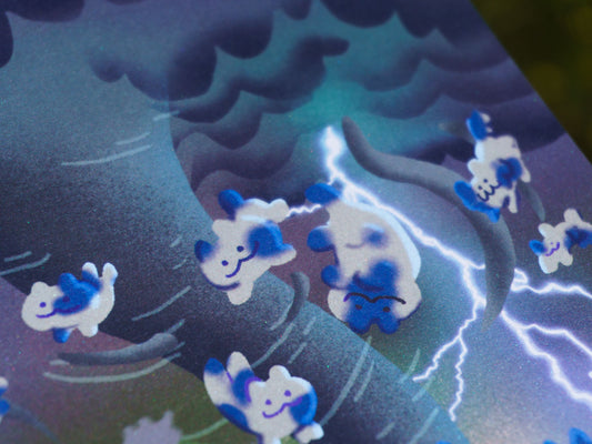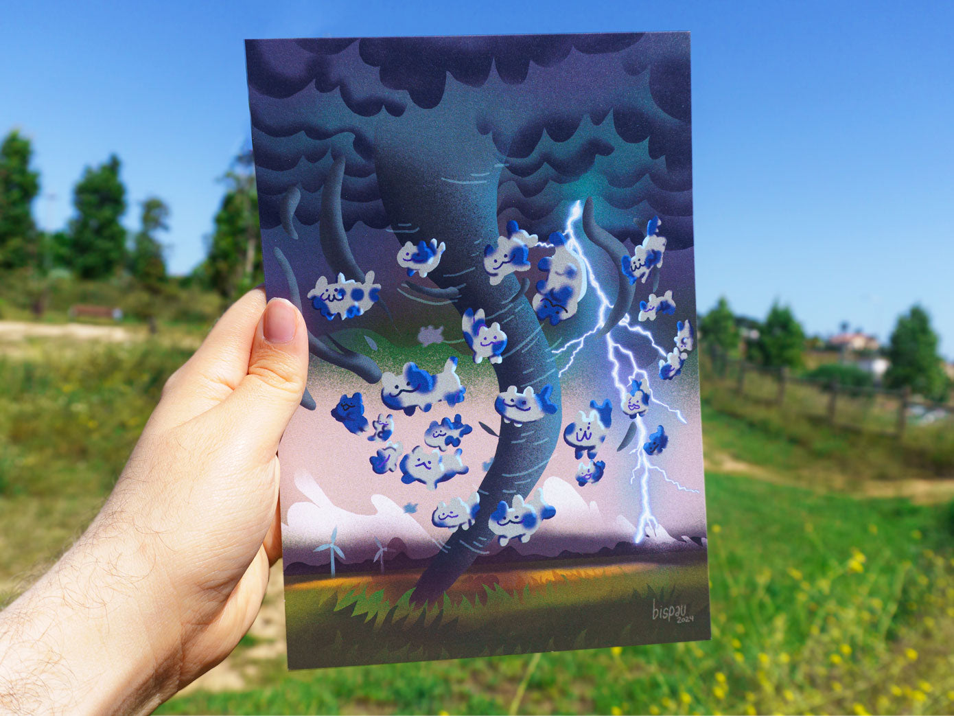 the print quality is wonderful and looks fantastic. the paper is more of a cartstock and feels more sturdy then regular paper. the shipping was also really fast and came with an additional sticker which i really appreciate! very very cool art and i also love that quote